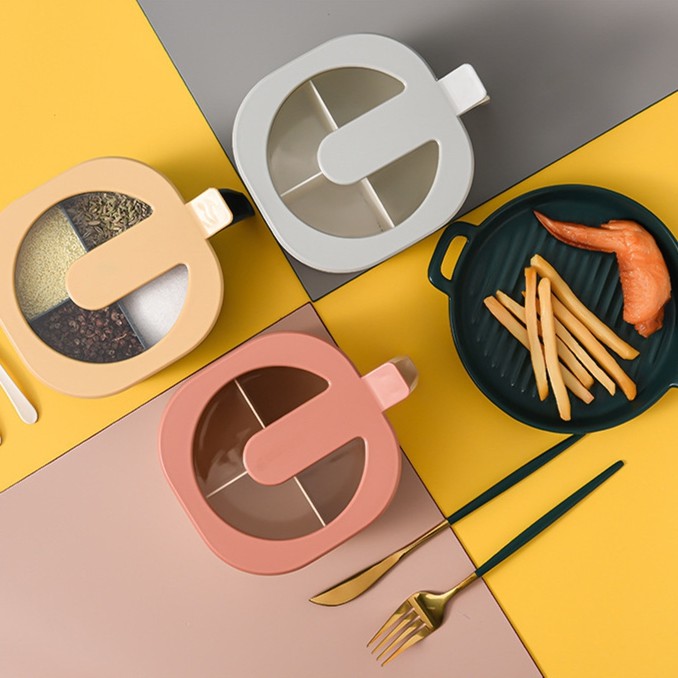Step 1: - Product title: 4 Grid Spice Box - Category: Kitchen Storage & Accessories>Condiment & Spice Racks - Material: Polypropylene (PP) Step 2: - Spice organization - Kitchen storage - Polypropylene material Step 3: • Keep spices organized with 4 grid spice box. • Perfect for kitchen storage of condiments and spices. • Made of durable and easy-to-clean polypropylene material. Step 4: • Spice organization • Kitchen storage • Polypropylene material