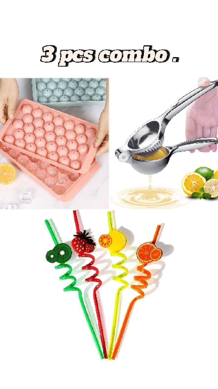 🔥 Ice Tray + Lemon Presser + Stylish Straw – Complete Juice Combo Set