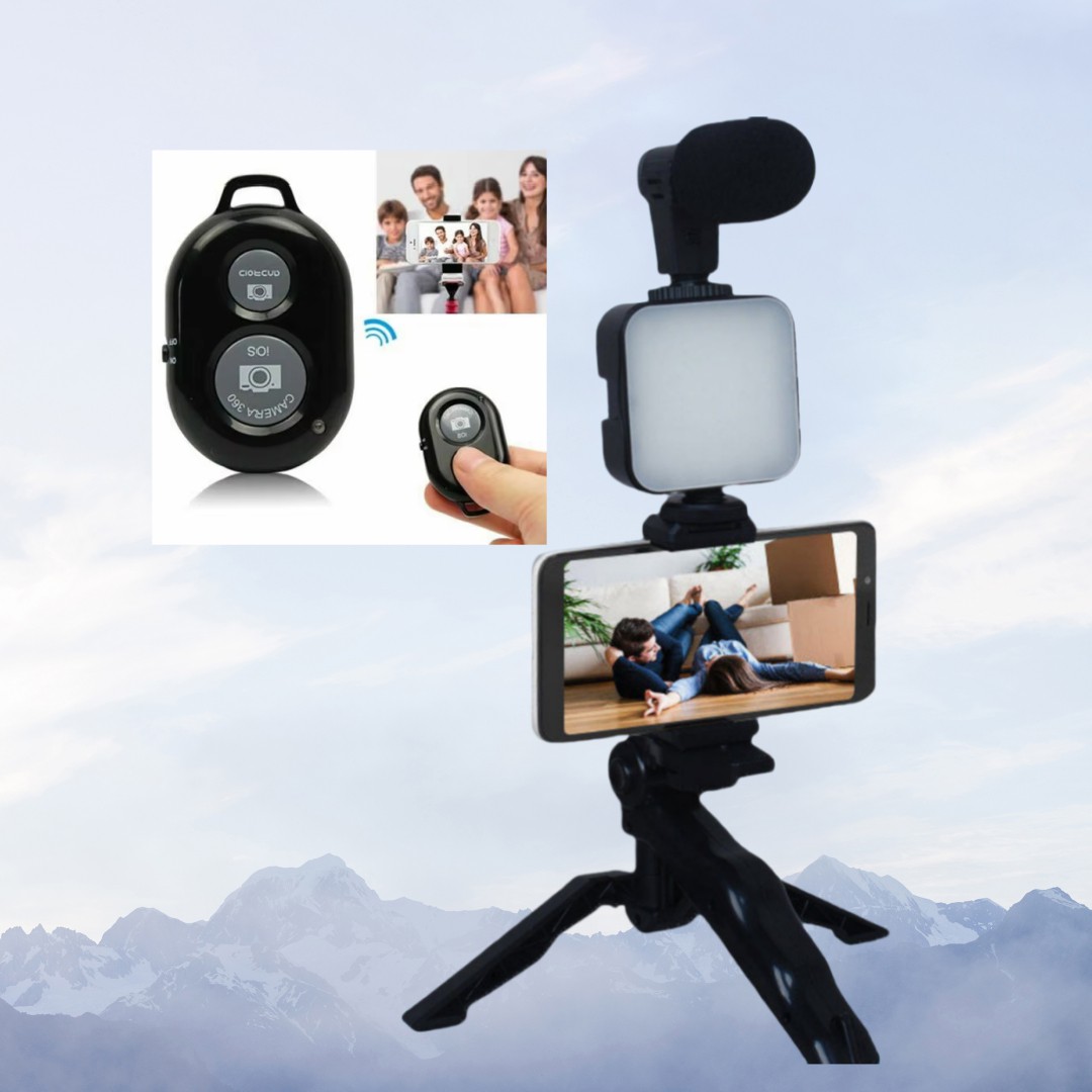 Smartphone Vlogging Set Video Kit With Table Tripod Mic LED Light Phone Holder Remote Control Video Making Kit